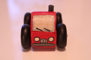 It was very fun (and super easy) to make. I just used scrap wood, some dowel, and some store-bought wooden wheels (got the wheels at Michael's Craft). The tools I used were a drill press (to make the holes for the axle, and the hole for the exhaust pipe), a vice, a coping saw, and some sandpaper.
